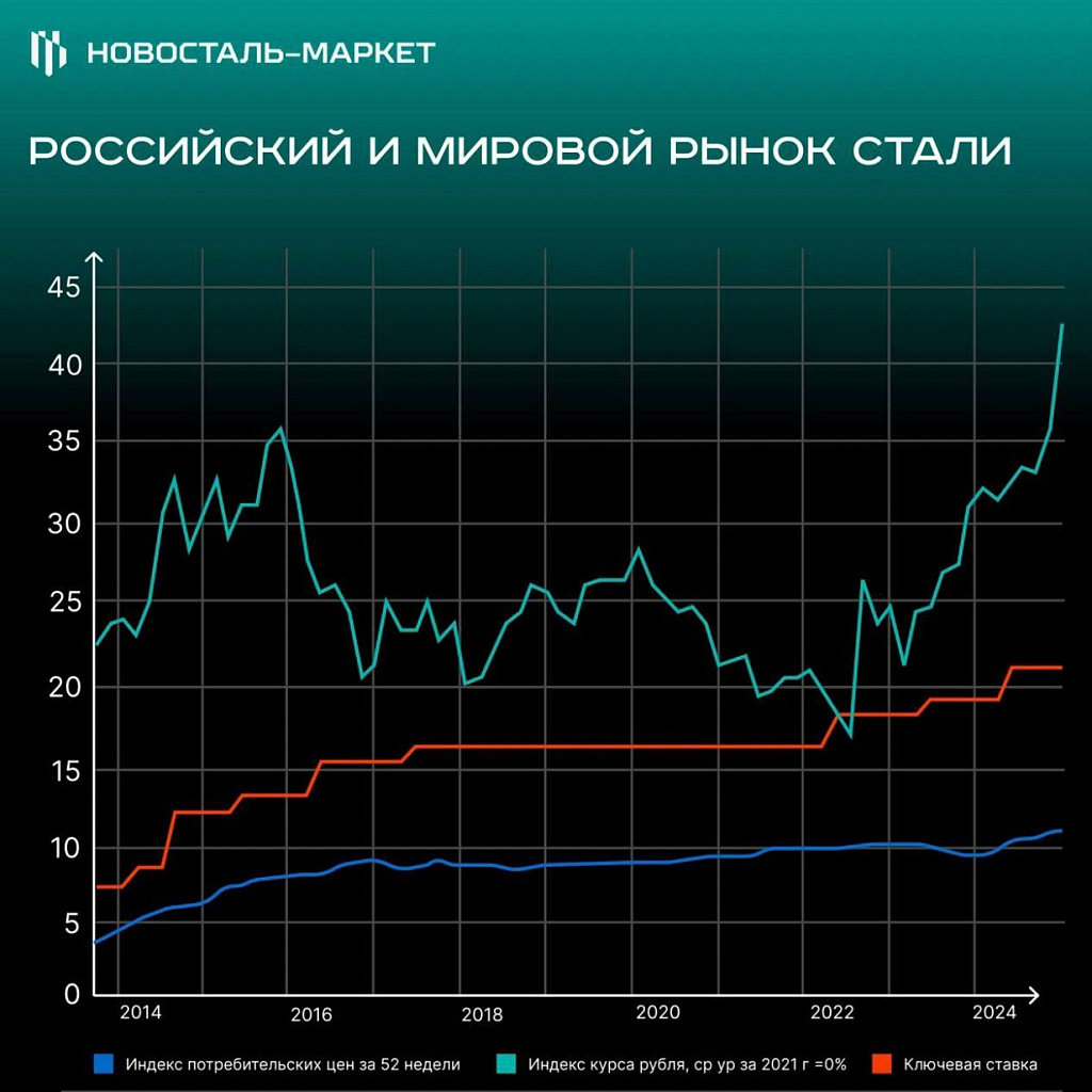 По данным Росстата, ВВП вырос на 4,1% за 10 месяцев, но санкции и блокада затрудняют ситуацию в металлургии. Выплавка стали снизилась на 7% с начала года, а в октябре — на 15,2%. Падение спроса затрагивает как частные, так и государственные проекты, а экспортные поставки не справляются с избытком из-за санкций.